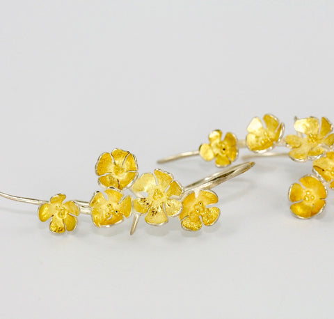 Apple Blossom Flower handmade Sterling silver necklace. We have highlighted each individual petal with bright 22ct yellow gold vermeil or, if you prefer choose the blue grey oxidised finish highlighting the detail in the centre of each flower. The oxidisation processes add depth and texture creating a unique finish to every piece.