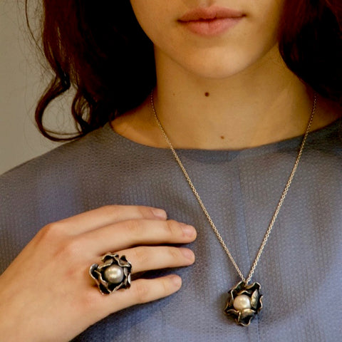 Ginkgo ring handmade in Sterling silver, hallmarked in London. I really like bold rings and my Gingko stretches from knuckle to knuckle. Its easy to wear and elegant with one leaf overlaying another.